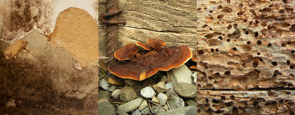 Svampe på træ-, og murværk kan medføre alvorlige bygningsskader med nedbrydning og svækkelse af både træ, mur og beton.